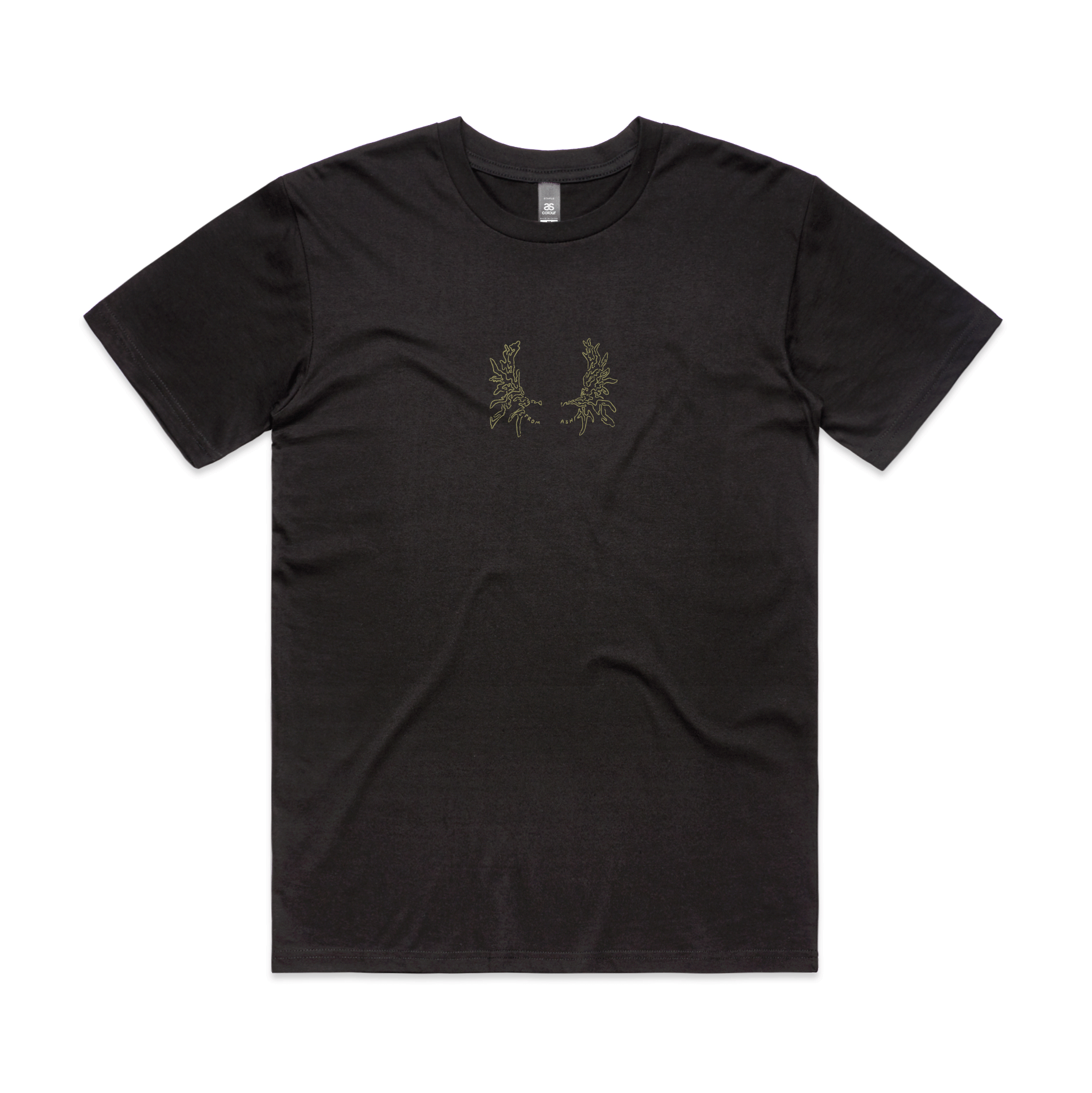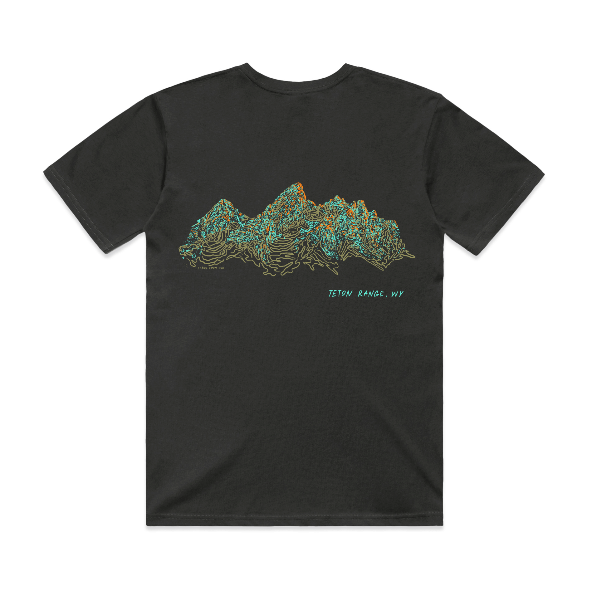 color-way: sage, bermuda teal, and clementine printed on a coal black tee